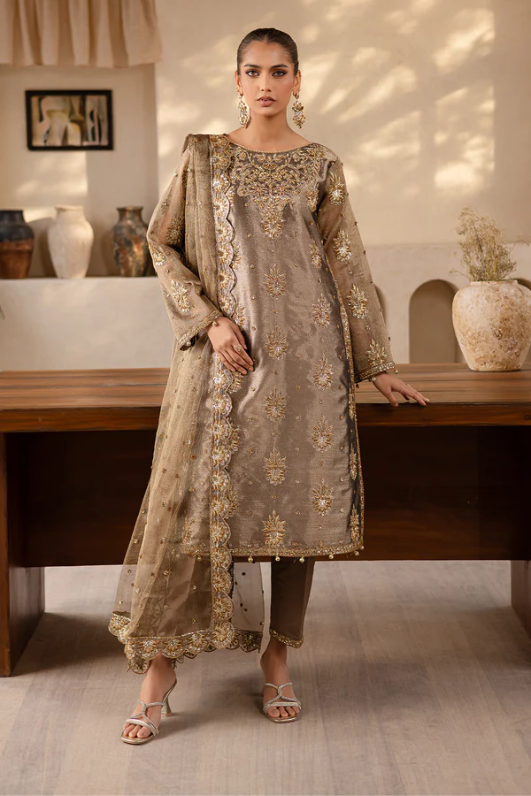 Zari Mesoury Embroidered Front,Back,Sleeves And Chalk Lace