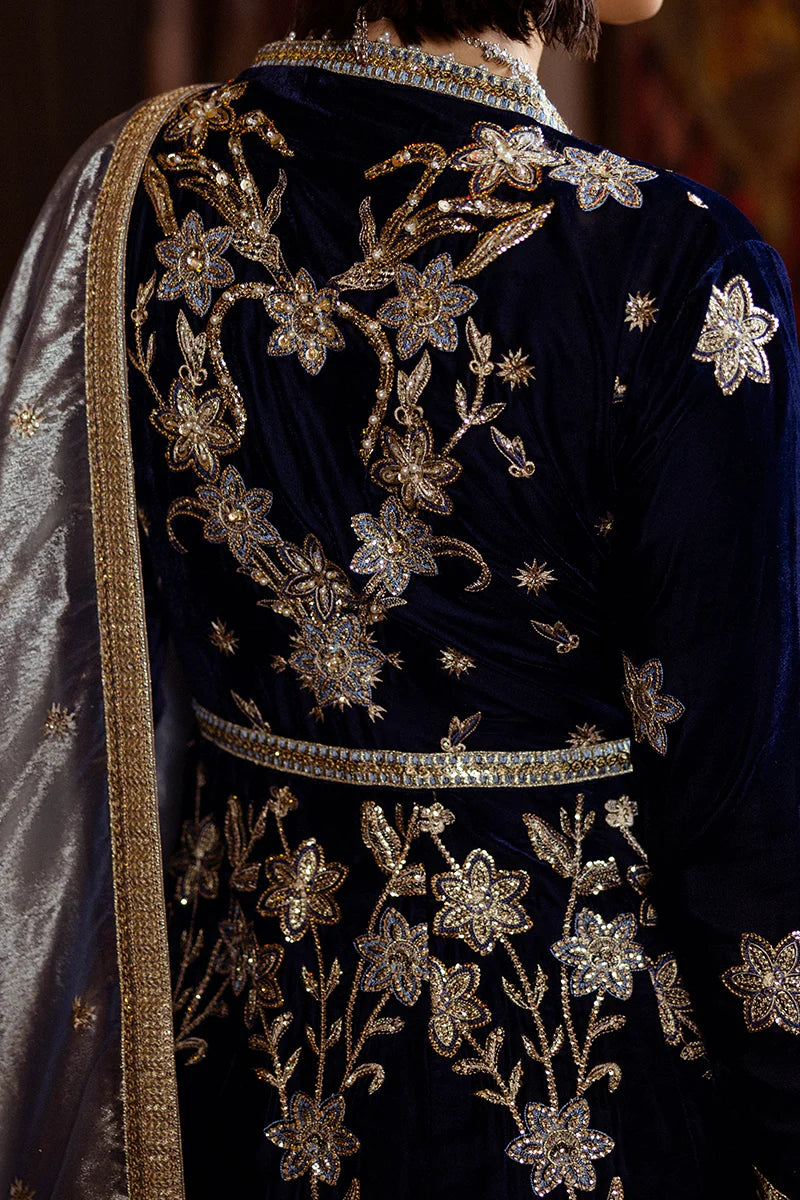 Embroidered, sequinned and hand embellished velvet for front yoke